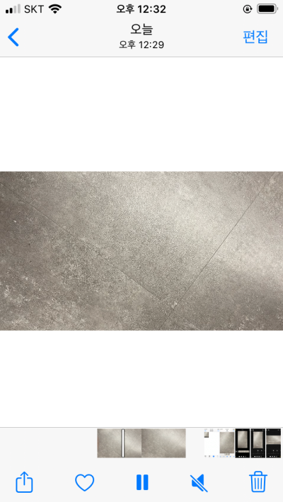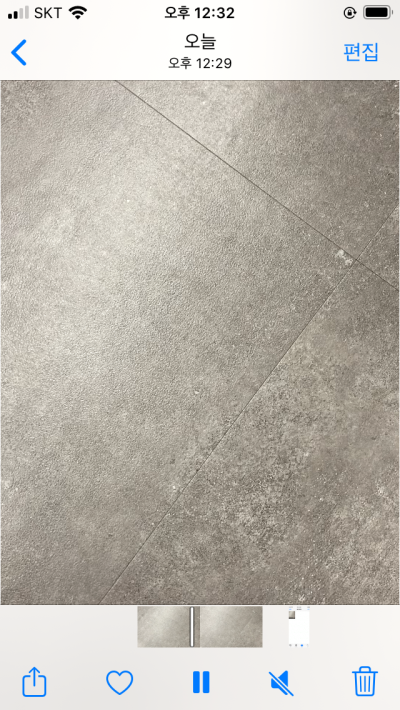 동영상을 아무거나 찍은 뒤 사진앱으로 이동하면 이렇게 동영상이 하나 보입니다. 이것을 선택해보면 바로 움직이는 화면을 볼 수 있는데 우측 상단 편집을 누릅니다.