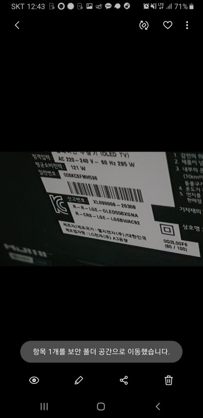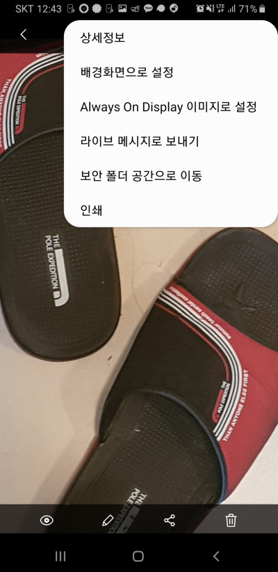 사진을 하나 보안폴더로 보내볼까 합니다. 우측 상단 점표시를 누르고 보안폴더 공간으로 이동을 누르면 '항목 1개를 보안 폴더 공간으로 이동했습니다' 와 같은 메세지가 나오며 사진이 이동됩니다.