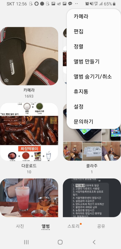 갤러리를 열고 앨범 탭에서 우측 상단 점표시를 누른 다음 앨범 숨기기/취소 항목을 누릅니다.